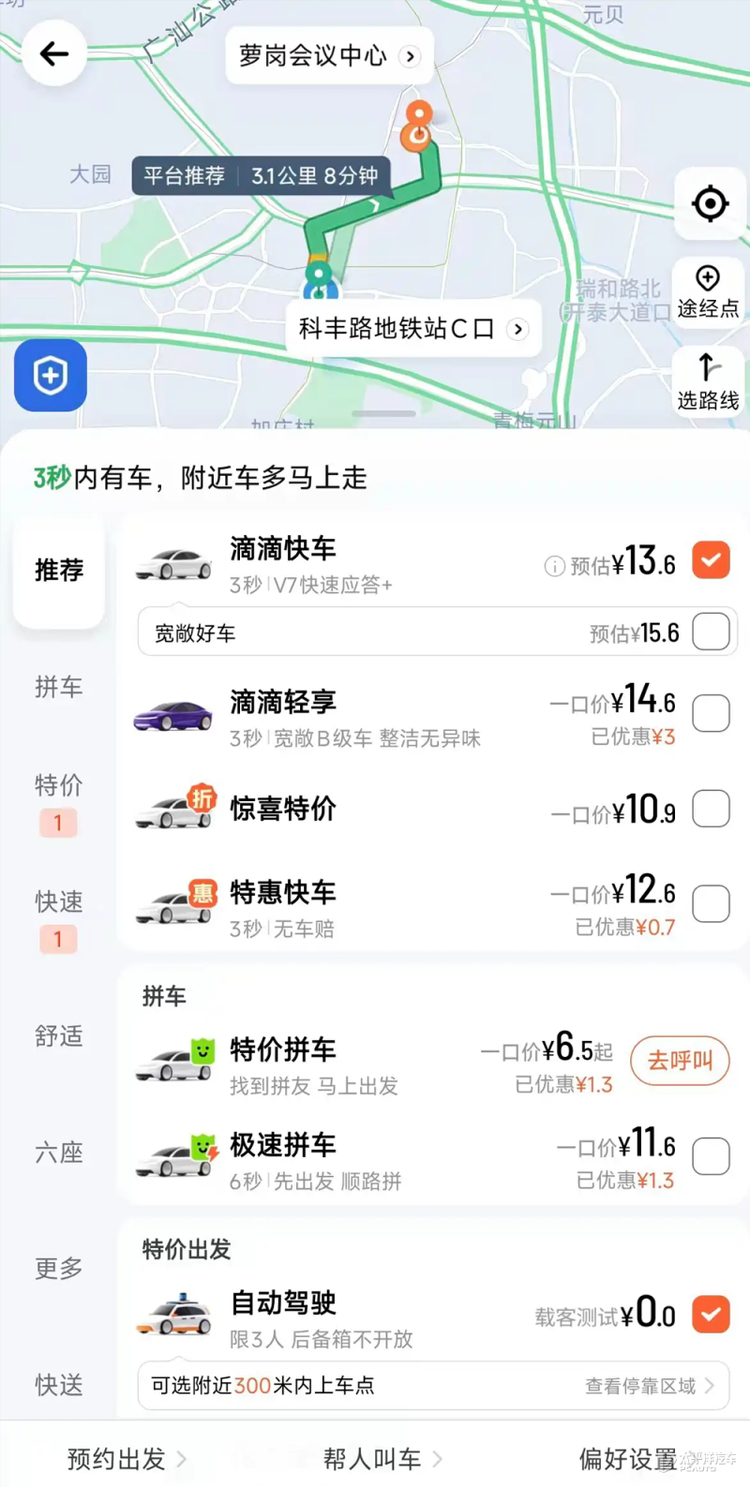 若由全无人自动驾驶车接驾,乘客可在App接单页面解锁车门,或者靠近车门自动解锁。行程中,乘客可根据实际需求,自主修改目的地或在安全区域就近停车;如需帮助,可通过车载屏一键联系远程客服。载客测试期间,滴滴自动驾驶将持续征集用户反馈,不断优化服务体验。