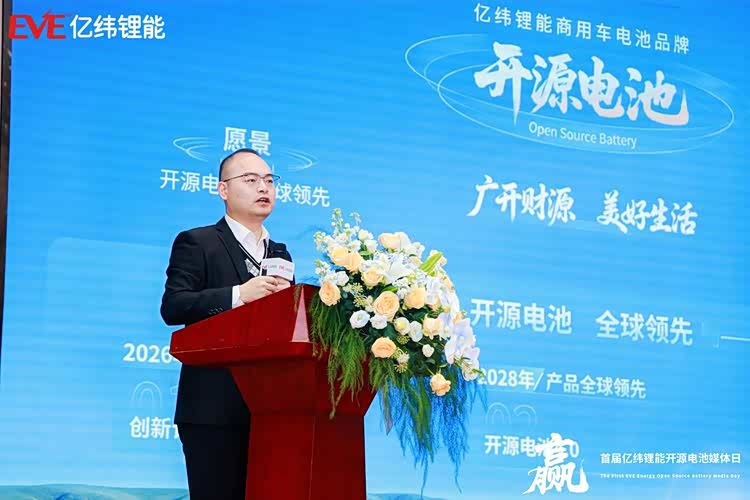 本届媒体日由亿纬锂能战略MKT总经理叶婉柔主持。亿纬锂能副总裁、商用车电池产品线总裁江吉兵博士作为首位演讲嘉宾登台,向在座来宾系统地介绍了开源电池品牌愿景和发展战略。