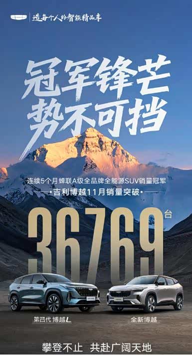 在新能源车型占据话题中心的当下,一款燃油车在2025年11月登上了紧凑型SUV销量排行榜的榜首。吉利博越系列11月持续热销36769辆,连续5个月蝉联A级全品牌全能源SUV销量冠军。吉利第四代 博越L(参数|询价)这款起售价9.29万元的A+级SUV,用实力证明:燃油车的智能化,也能很“硬核”。