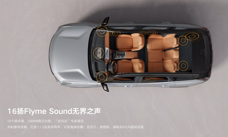 打开车门,科技感直接拉满。中高配的15.4英寸2.5K超高清全面屏,显示效果细腻,占据了视觉中心。驱动这块屏幕的,是国产首颗车规级7纳米工艺的“龍鹰一号”芯片。它提供了16G运行内存和128G存储空间,其AI算力达到主流高端车机芯片的两倍。清晰的屏幕和强大的芯片只是基础,智慧的交互才是灵魂。车机搭载Flyme Auto智能座舱系统,支持前后排四个音区的语音交互。这套系统能识别高达20种不同的方言,系统响应速度仅为0.8秒,让对话如同与真人交流一样自然流畅。高配车型更进一步,配备了25.6英寸的AR-HUD抬头显示系统,能将导航、限速等行车信息投射到前风挡上,驾驶者的视线无需离开路面,安全性得到提升。