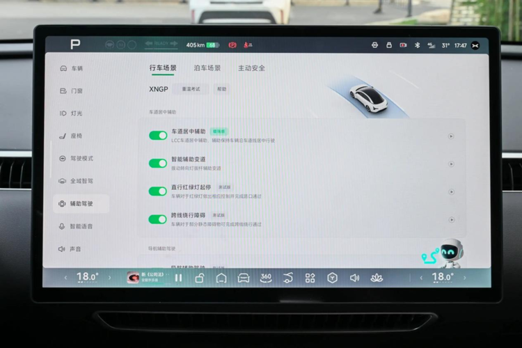 接着辅助驾驶部分,小鹏M03搭载了自家的XNGP系统,属于纯视觉方案,通过两颗英伟达芯片高算力的加持,除了遥控泊车、高速NOA以外,还支持同价位少见的城区领航辅助驾驶系统,智驾表现在同价位确实很有竞争力;而长安启源A06搭载了智能驾驶辅助视觉版,其实主要功能和小鹏M03差别不大,只是没有支持城区领航辅助驾驶。真要是追求驾驶辅助,可以看看长安启源A06激光Ultra版本,硬件配置更顶,也有城区领航,而且恶劣天气下探测性能更好。