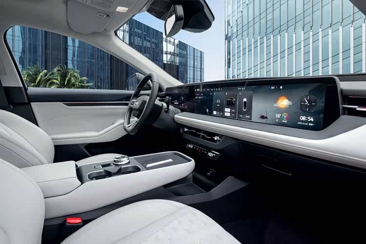内饰方面,新款蒙迪欧中控台布局基本不变,继续配备联体式屏幕。不过,空调出风口下方增加物理滚轮及快捷按键等,副仪表台区域调整为悬浮样式,前部增加手机无线充电面板,后方为旋钮式换挡机构及开放式杯架。不过福特新蒙迪欧搭载了全球首发新一代SYNC®+智行互联系统,硬件全面升级,全系标配高通骁龙8155芯片,为未来大型应用上车预留充足的性能空间。