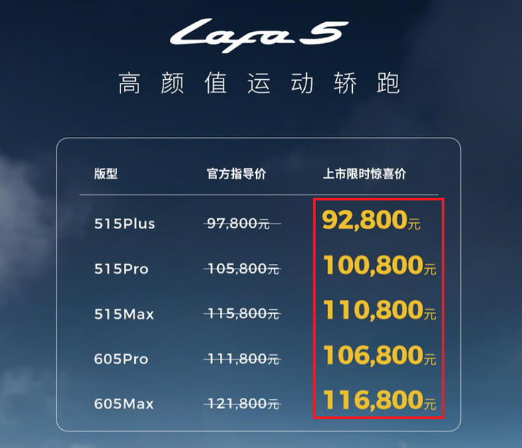 先来看看消费者最关心的价格,我作为零跑T03车主,本来就觉得零跑性价比够能打,没想到这次零跑Lafa5更狠 指导价9.78万起,现在还有限时优惠,9.28万就能拿下!这个价格买台纯电两厢紧凑型车,真的把预算有限的年轻家庭拿捏得死死的。
