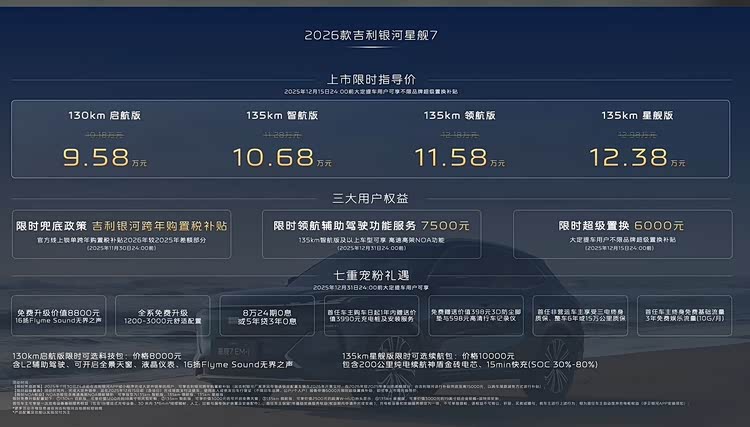 从日常通勤的经济性到全家出行的舒适性,26款星舰7用全维度实力给出了最优解。9.58万起的价格叠加置换补贴、0息金融等限时权益,让高品质家用出行无需高昂成本,堪称家庭用户的“理想之选”。