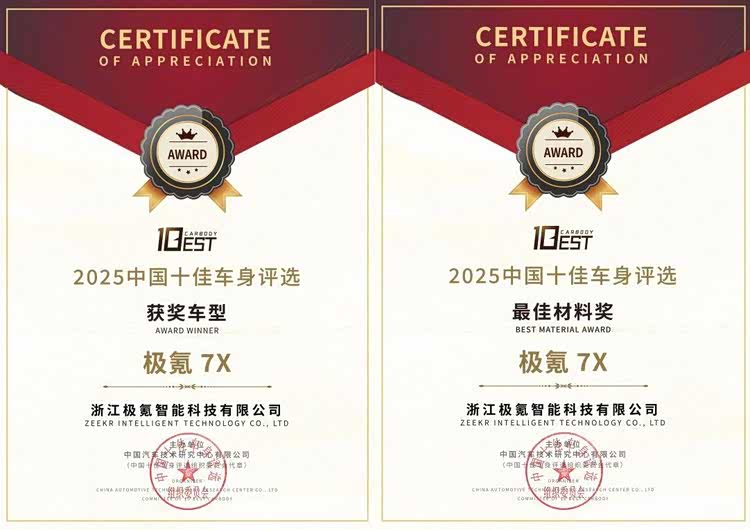 这些细节共同构成了焕新极氪7X的安全溢价逻辑:Euro NCAP与C-NCAP双五星认证、2025年中国十佳车身奖等荣誉,只是其安全实力的外在背书;而105km/h高速后碰不变形的乘员舱、75吨侧柱碰承载力、6秒保压的安全气囊等硬核数据,才是家庭用户可感知的安心保障。