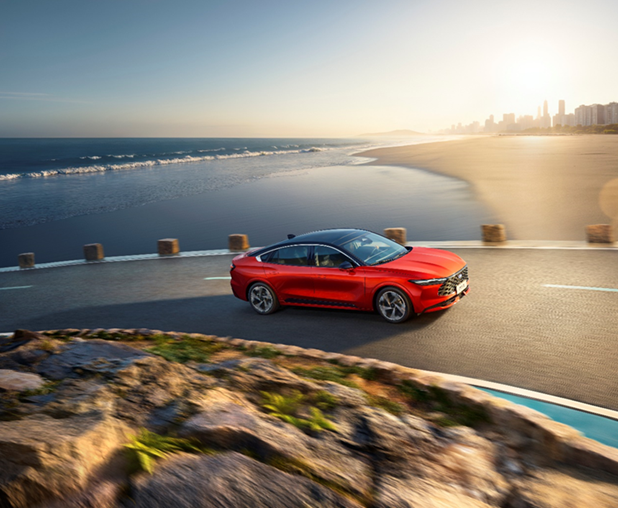 俯冲式车头、修长大灯、三柱型尾灯在夜色中流光溢彩,261匹马力在油门踩下的瞬间喷薄而出,6秒破百的推背感将城市甩在身后,这不是跑车,这是一台起售价仅14.98万元的B级轿车。