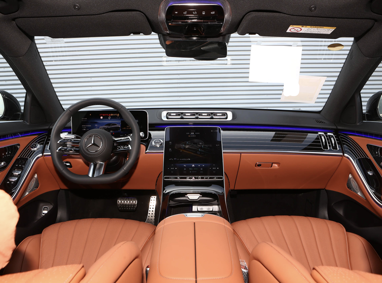 全新的梅赛德斯奔驰S级的车身也变得更加符合时代潮流,车顶是一整块全景天幕,车窗四周加入了银质金属饰条,笔挺的高肩线横向贯穿了整个车身,四个隐藏式的门把手搭配着四个宽大的无边框车门设计,下方还配备了电动迎宾踏板设计,营造出了浓郁的商务氛围。十辐式轮圈配备了米其林PAX轮胎,这款轮胎可以让轮胎缺气时保证行驶30公里,帮助重要人物逃出危险区域。尺寸方面,新一代奔驰S级长宽高为5320*1921*1513mm,轴距3216mm,风阻系数低于0.2Cd。车内采用了四座布局,菱形纹路的真皮打孔材质,内部还有环保级材质填充,肩/颈/腰/臀都加入了侧翼,带加热/通风/按摩功能,并标配了按摩头枕,头枕两侧还加入了柏林之声高级音响的扬声器,跑长途也是一种享受。
