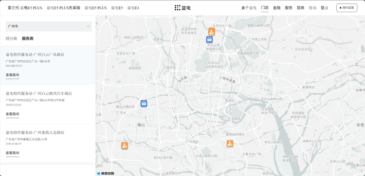 图:广州可以找到的交付中心和售后,也就三家。