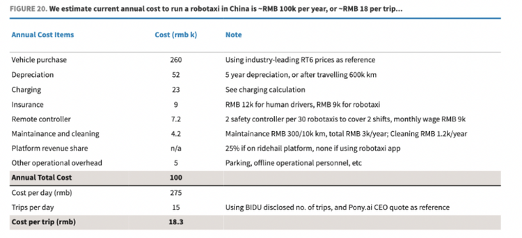 据巴克莱银行在今年7月发布的研报称,在Robotaxi单车的成本结构中运营费用(包括充电、维保、保险等)占超48%。该报告进一步预测,到2030年,随着硬件因规模效应持续降本,其占总成本比例将继续下降,而运营相关成本占比将升至55%左右。