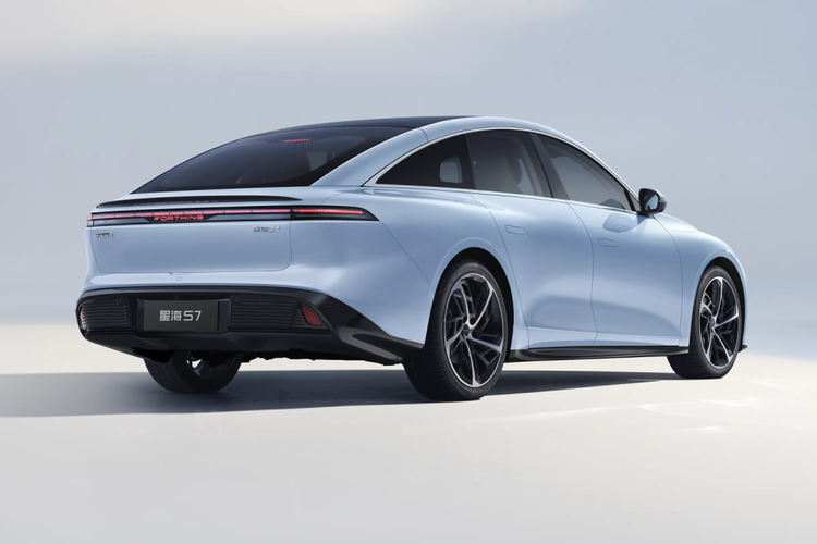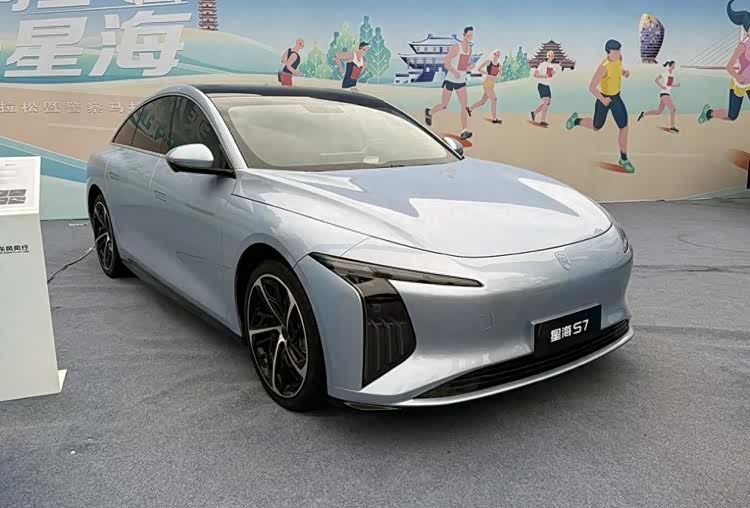 先看看这位“刺客”的派头。星海S7的造型是标准的运动轿跑范儿,低趴的车头、溜背的线条,姿态摆得很到位。4935mm的车长和2915mm的轴距,让它拥有了接近中大型车的体量感,这在小鹏P7、比亚迪海豹等对手面前,尺寸上是不虚的。