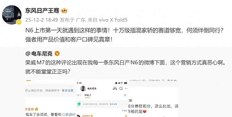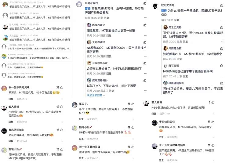 有人说日产急了,可意想不到的是,真正急的另有其车。一般这样高关注度的新车上市,网络上文章必定很多,按理说文章的评论区该是网友问配置、媒体聊试驾的常规操作。结果好戏来了,大量评论突然涌入各大汽车平台关于东风 日产N6(参数|询价)的报道页面,评论的都是差不多的意思,字里行间都在说“N6不错,但荣威M7更牛”。这些评论发布时间集中,话术雷同,以漫哥三十多年单身经验断定,这有组织的网络行为痕迹过于明显了。