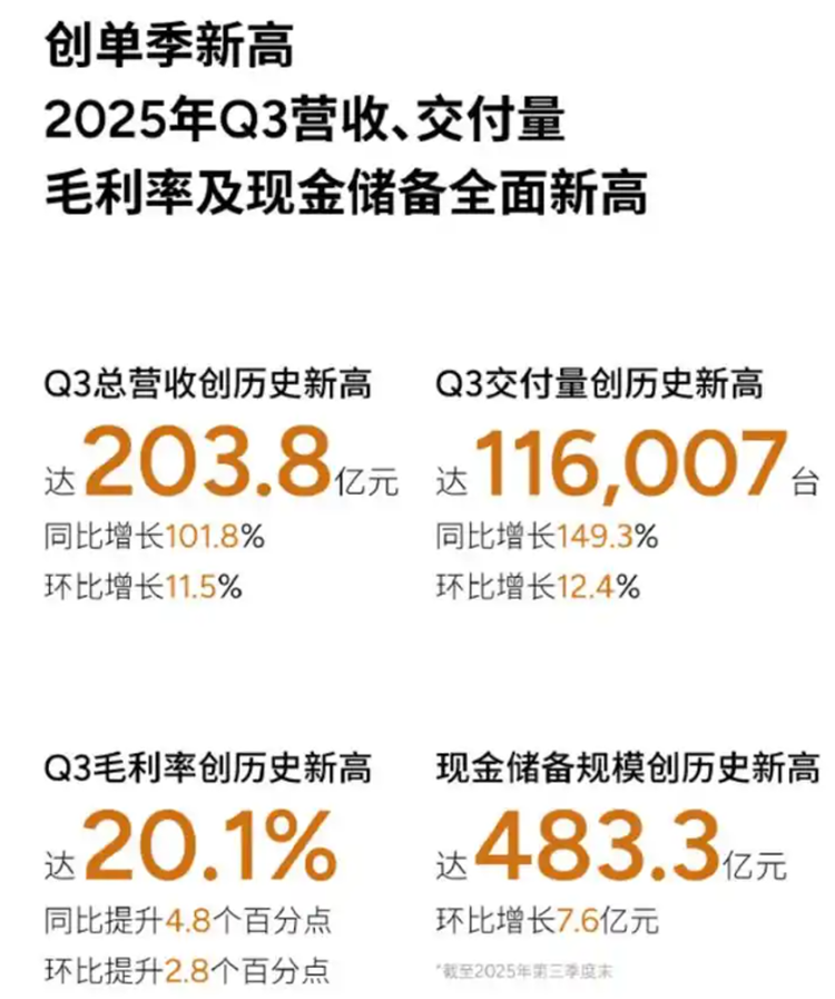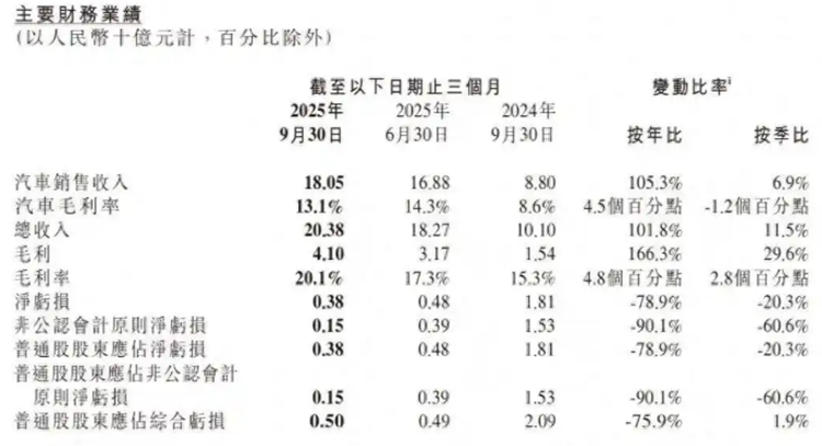 不信你看,2025年第三季度,小鹏的汽车业务毛利率环比下滑了1.2个百分点,降至13.1%。