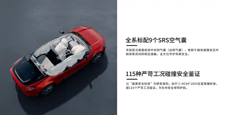 年轻人的“移动社交名片”,颜值必须无死角。bZ5基于丰田e-TNGA纯电架构打造,将“宽体动感”与“实用空间”精准融合——超1.9米的越级车宽搭配1.54米的低趴车高,形成极具张力的车身比例,比同价位比亚迪秦PLUS EV宽出近10厘米,视觉上堪比中型轿车。这种设计不仅让整车停在商场车库时自带“焦点属性”,随手拍张侧颜发社交平台就能收获点赞,更让车内横向空间格外充裕,后排坐三名成年人也不拥挤,彻底告别小型纯电的局促感。细节上的巧思更戳年轻人的心:溜背式车顶线条从B柱平滑延伸至车尾,搭配隐藏式电动门把手和19英寸旋风轮毂,运动感拉满却不张扬;前脸“数字水滴”LED大灯组采用熏黑设计,解锁车辆时会呈现流水式动态效果,夜晚点亮后辨识度十足。内饰则以“极简科技风”为主,悬浮式中控屏与全液晶仪表形成连贯视觉,浅灰与深黑的撞色搭配,既避免了纯黑内饰的沉闷,又比亮色设计更耐脏实用,完全符合年轻人“好看又省心”的审美需求。