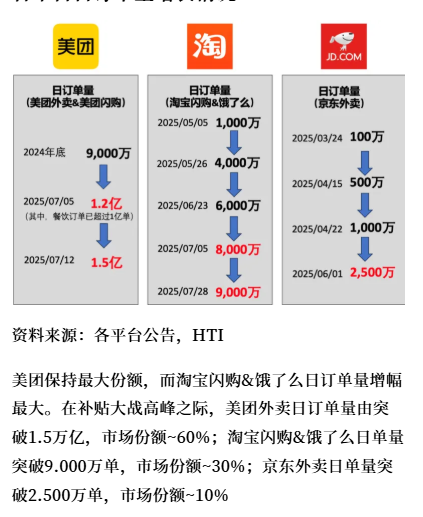 2025年11月,京东正式推出独立外卖APP,这是一个重要的战略信号。此举意味着外卖业务从京东主站的“补充场景”升级为“主入口业务”,意图通过外卖这一高频消费场景,提升整个京东生态的用户活跃度和粘性。上线初期,凭借“百亿补贴”和商家免佣金等激进政策,京东外卖的用户和订单量实现迅猛增长。数据显示,其上线40天日订单量便突破100万,并在2025年6月达到2500万单的峰值。