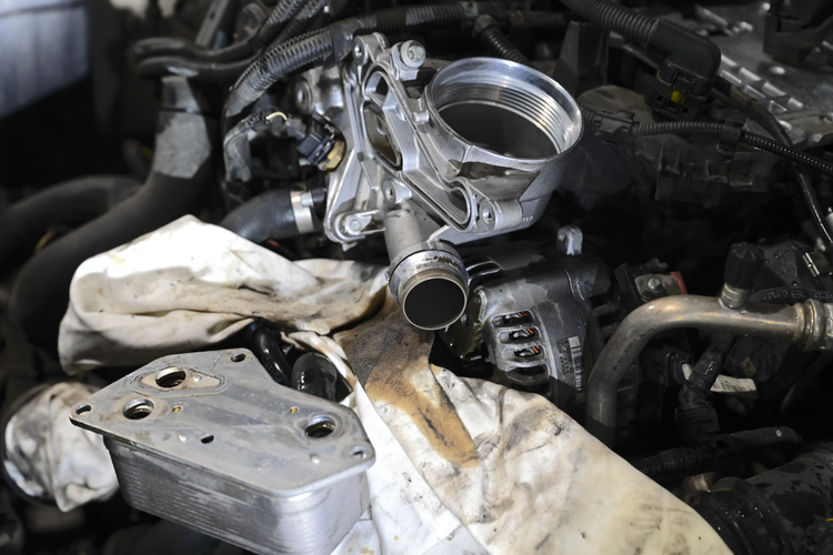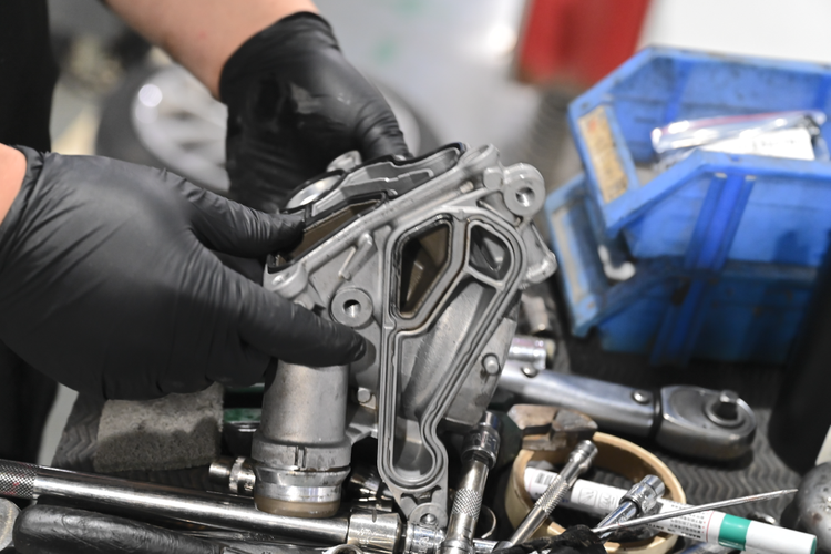 高温加上高油压,这部分的橡胶材质密封圈出现老化见怪不怪了。同理,机油散热器垫也是如此,一并进行更换。