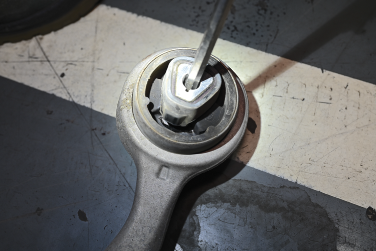 更换完毕以后、做四轮定位以前,还有一个步骤经常被忽略。顶起悬架系统,调节衬套上的螺栓,作用就是释放应力,否则衬套处于拧住的非正常受力状态,会让人开着总觉得底盘哪里别扭,不仅效果不好,而且影响寿命。