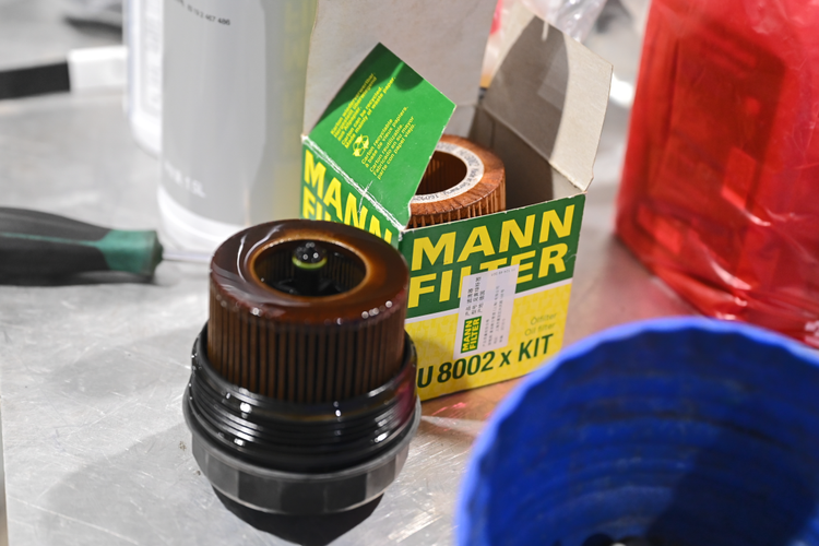 漏油点整备完毕就开始加注机油。我们为它选用了金美孚的0W40粘度机油。宝马在以前,尤其是E89刚上市的时候只能选择0W40。所以我们按照童年的配方给它喂食,一定程度延缓烧机油的情况,还能更好保护发动机。配套的机滤选择的是MANN牌,等同于原厂品质。