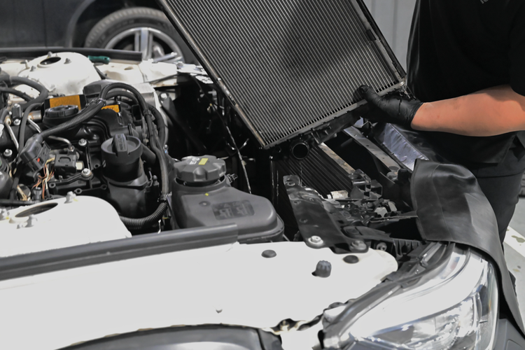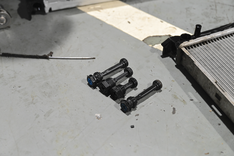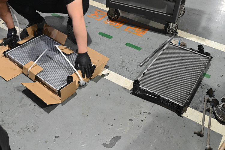 放完旧冷却液,卸下中冷水箱。替换水箱选择了法雷奥品牌。看似一切顺利,但安装时发现:冷却水箱的塞子型号对不上——开局不顺。