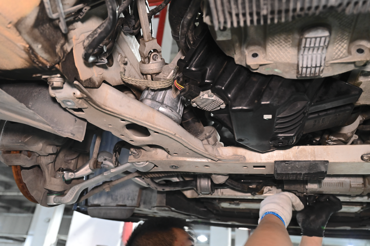 将车举起,技师按照清单更换漏油的油底壳和油底壳垫——这二位总是一起换。这项整备和我的E90一样,也属于宝马的通病了,到年限的“必漏”项目。