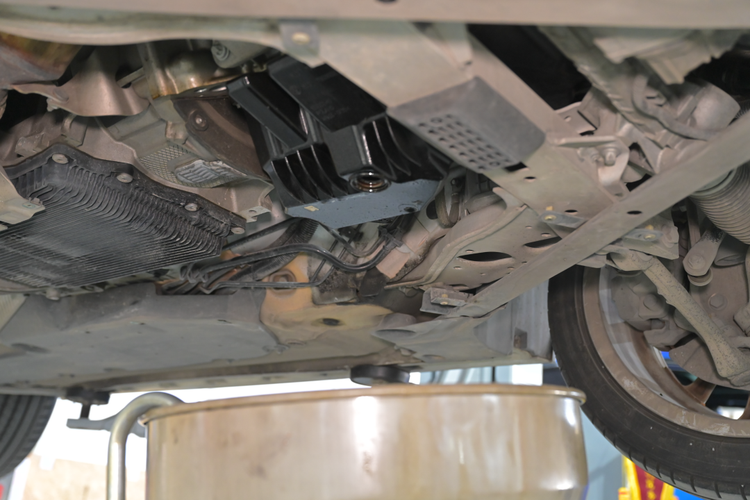 拆装油底壳需要落下副车架,这个步骤比较费事——还得吊起悬置的发动机,所以难得拆一次,趁此机会索性就把老化的发动机脚垫进行更换,省一次工时嘛。