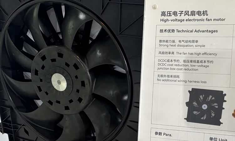 猛士M817 Hero版使用的400伏级高电压主动散热风扇的转速,可以根据动力总成、启发\驱动电机和电控系统的温度,进行线性调节,已达成设定在动力舱内内热流平衡,主散热管路内冷却液温度处于预设值。使用高电压散热风扇,对于猛士M817 Hero版混动越野车在高温环境的用车可靠性的提升,直接且有效!相对12\24伏低压电驱动的电子扇,400伏级高压电子扇可以在高温环境全负载超长时间使用同时,可靠性更好。