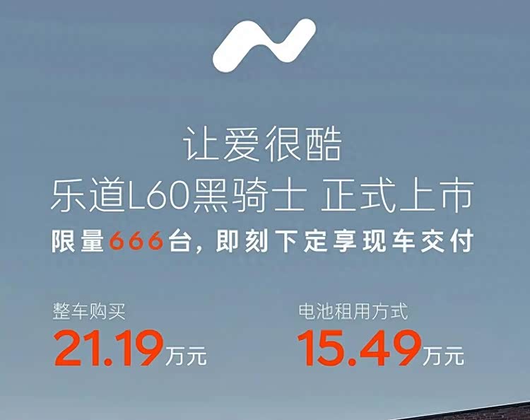 比普通版本高了5000元,乐道L60黑骑士版限量上市21.19万元起