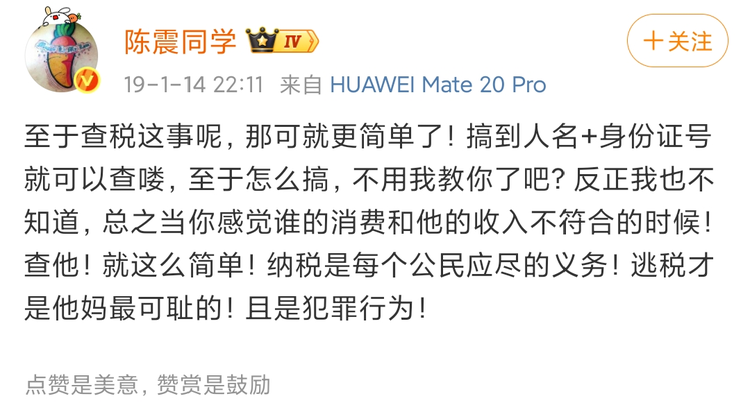 车评人陈震偷税漏税被查,一条广告80万,曾发微博批“逃税可耻”