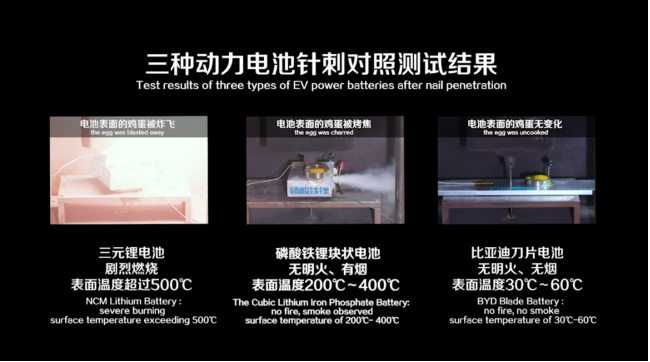 比亚迪在2020年推出了能通过针刺实验的刀片电池,将汽车动力电池的安全性提升到了新的高度,之后几年,友商也开始推出自家的刀片式结构动力电池包,以及尝试类似的安全测试。