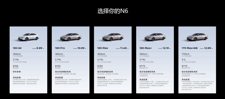 比价格,N6起售价稍低,但核心配置相当的情况下,三款车实际差距不大。