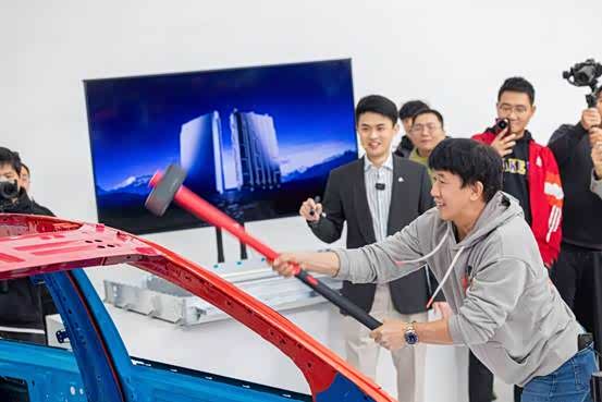昊铂HL采用超强泰坦笼式钢铝混合车身,关键部位热成型钢屈服强度高达1500MPa,1平方厘米内可承受15吨的力,相当于仅指甲盖大小的面积即可承重5头成年大象。通过现场检验,昊铂HL车身大锤猛烈敲击不变形,电钻钻击超20秒也仅留白痕,充分印证了其车身钢架构的极致安全性。