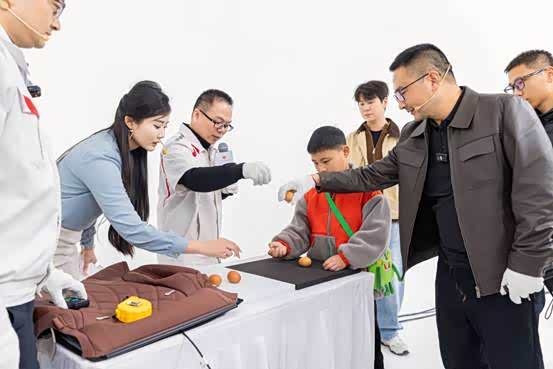此外,座椅内置的慢回弹海绵,成本是普通海绵的5倍。其最大特性是“低温不变硬,久坐也舒适”,确保在任何气候下都能提供稳定、柔和的舒适体验。通过现场的鸡蛋和玻璃球掉落测试,可以明显感知慢回弹棉比普通绵的回弹更低、着陆更稳,对用户来说,就是座椅的包裹性会更好,过坑洼路面时,颠簸会被大幅度吸收掉,乘客避免被弹起。