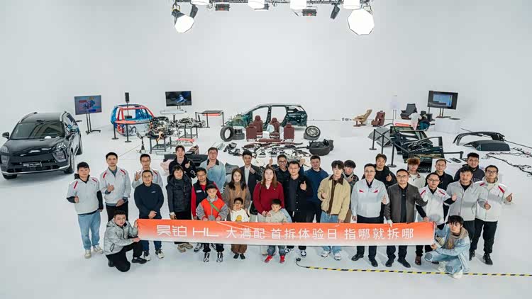 在完成极限测试后,这台车也被直接运抵长沙,开启了一场别开生面的“昊铂HL大满配首拆体验日”活动。广汽昊铂更邀请车主用户与媒体达人共同见证,在广汽昊铂产品总经理童伟与资深拆车专家老章的带领下,层层拆解,毫无保留地公之于众。