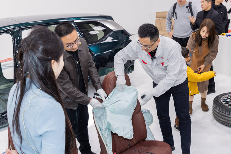 昊铂HL全系标配7组气囊,其中侧气帘更长达2.83米,远超同级车型,全面覆盖至第三排。有着超100台拆车经验的老章老师在现场进行讲解,强调说:“现在很多车企会标榜自己的气囊个数,却让大家忽略了体积。”而昊铂HL的气囊尺寸比同级车型大,还配备了双腔中央气囊,这不仅成本是双倍,在发生碰撞的时候,更能防止前排两人相碰,对头部和胸部同时起到充分的保护。并且配合德国采埃孚大尺寸发生器,保压时间更长,为复杂碰撞事故提供持续守护。