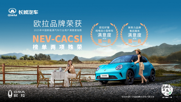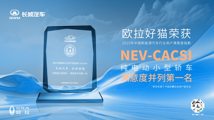 近日,中国质量协会正式发布《2025年中国新能源汽车行业用户满意度指数(NEV-CACSI)测评结果》。在这场被誉为“汽车质量试金石”的权威评测中,欧拉汽车凭借卓越的产品力与备受赞誉的服务体验,一举斩获两项含金量极高的桂冠: 欧拉好猫(参数|询价)荣膺“纯电动小型车用户满意度并列第一名”,欧拉品牌则摘得“新势力品牌售后服务满意度并列第一名”。