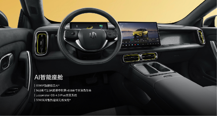 零跑Lafa5在智能化方面的表现,同样打破了10万级车型的配置天花板。座舱核心搭载高通骁龙8295P旗舰芯片(高配车型)或8155芯片(中低配车型),其中8295P芯片采用5nm制程工艺,AI算力达到30TOPS,相比7nm工艺的8155芯片,CPU算力翻了2倍,GPU性能提升近3倍,配合Leapmotor OS 4.0 Plus系统,操作流畅度堪比高端平板电脑,实测连续切换应用、开启3D导航等场景均无卡顿现象。