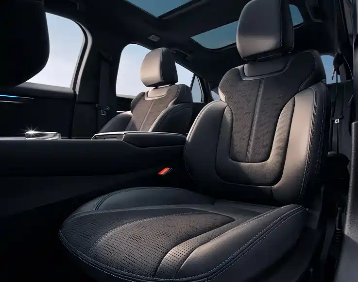 内饰延续1.1米超广域联屏设计,新增空调实体按键面板与悬浮式镂空副仪表台,全系标配8155芯片与新一代SYNC+智行系统,支持大语言模型交互。动力提供1.5T、2.0T燃油及1.5T混动版本,2.0T车型最大功率192kW,零百加速6.5秒,混动版WLTC油耗低至4.86L/100km,部分车型还标配L2级智能驾驶辅助系统。