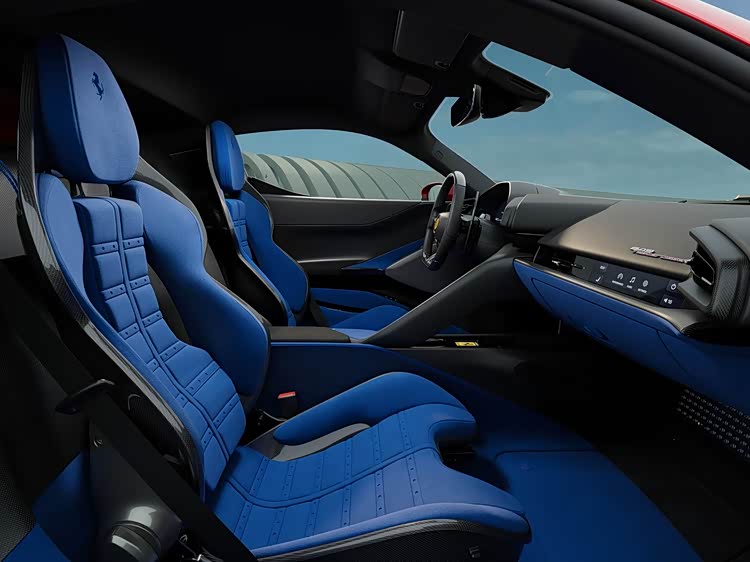 内饰以“驾驶员为中心”,环抱式赛车座舱搭配两种运动座椅选项,HMI智能交互系统集中布局于方向盘区域。动力搭载4.0T V8双涡轮发动机+三电机插混系统,综合功率达1050马力,零百加速仅2.3秒,最高时速超330km/h。配备7.45kWh电池组,WLTP纯电续航25km,可选装Assetto Fiorano性能套件减重30公斤。