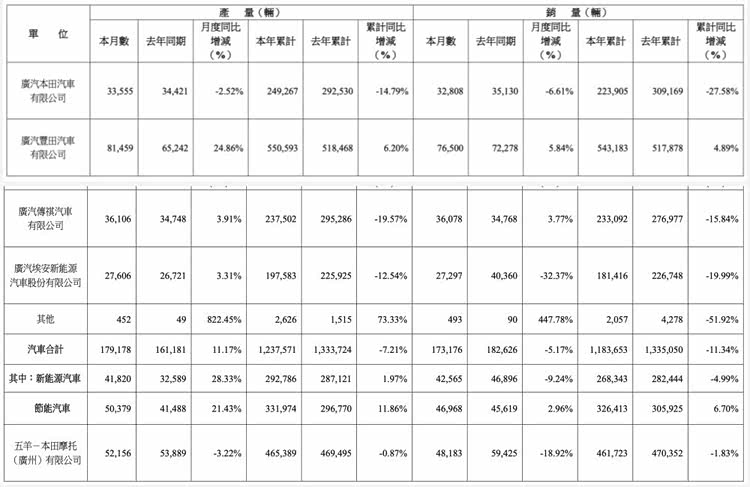 ▲广汽本田、传祺、埃安前9个月销量下滑