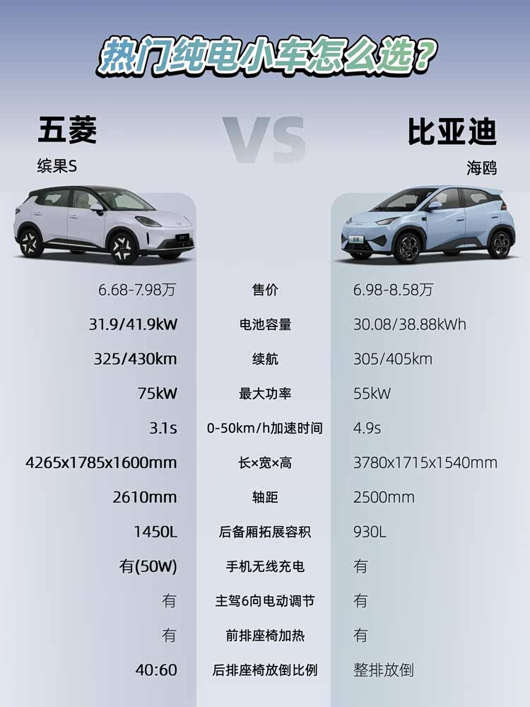 在当下追求精致出行的潮流中,许多年轻人在 缤果S(参数|询价)与海鸥之间举棋不定,这两款精品小车各具特色,但深入体验后你会发现,相对于海鸥,缤果S对家用场景的理解,藏在日常用车的每一个细节里。当消费观日趋理性,如果你手握6-8万,到底该如何选择呢?今天我们就以指导价为7.98万的缤果S 2025款430km旗舰款和指导价7.88万的海鸥2025款智驾版405KM自在版为例来进行对比。(以下简称缤果S和海鸥)