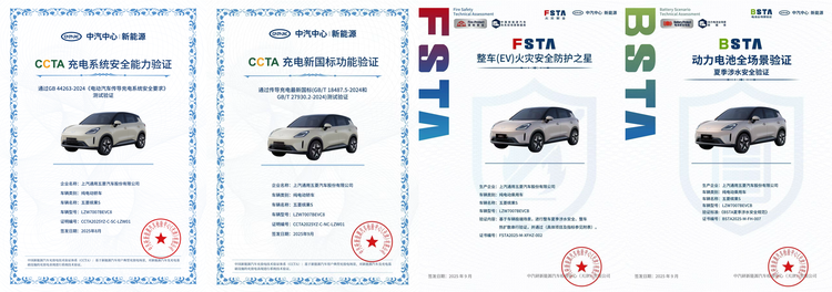 在第三届新能源车电安全大会上,缤果S荣获了中汽中心“BSTA动力电池全场景验证夏季涉水安全验证”及“FSTA整车EV火灾安全防护之星”双项荣誉。此前,缤果S已成功斩获CCTA充电新国标功能验证及CCTA充电系统安全能力验证两项证书,四证加持让整车的安全性能拥有了专业机构的背书。在大家都较为关注的电池安全方面,缤果S搭载了神炼电池组,这项电池技术保持了“三百万销量碰撞0自燃”的纪录,除此之外,电池包还采用了多纵梁设计,结构强度进一步提升,即便整车发生碰撞,也确保了电池包的安全。