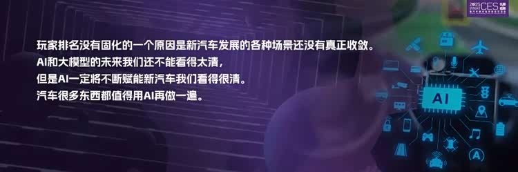 刚才说玩家排名没有固化的原因,因为新汽车还有很多可能性,三电有可能有点固化了,但智能化只是刚刚开始,还有很大的生长性,包括座舱的体验、安全体验、服务体验。