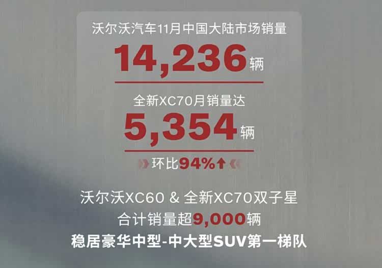 可以肯定的是,在国内新能源市场渗透率持续攀升的行业背景下,这一“混动破冰、纯电进阶”的清晰策略,既帮助沃尔沃精准覆盖不同消费层级的核心诉求,又为其转型增长提供了多元支撑,而其11月销售数据便是最好的佐证。