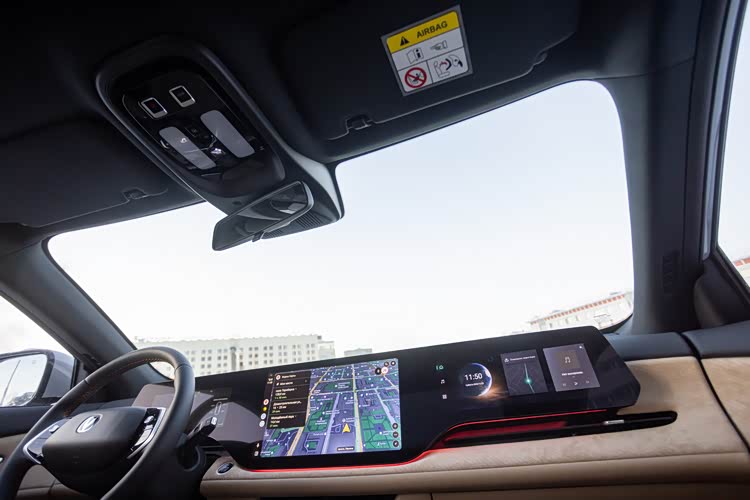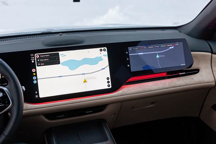 在车尾部分,车顶有着大尺度扰流板,贯穿式的尾灯加入了独特的栅格造型,让人眼前一亮,和车头的风格形成对应,后保险杠部分还有着双边双出排气装饰和扩散器,让整车的风格形成统一。在内饰部分,当然和国内版本也不会有区别,悬浮式大型液晶屏三联装排列于中控台面,是最大的亮点,环抱式中控面板有着植绒材质和撞色工艺加入,显示出不错的高级感,扶手向前端区域,双杯架手机充电面板有着木纹装饰进行覆盖,独特两个方向盘,后方是怀挡机构,符合中国市场的流行时尚,无论俄罗斯消费者是否喜欢,那也只能适应。