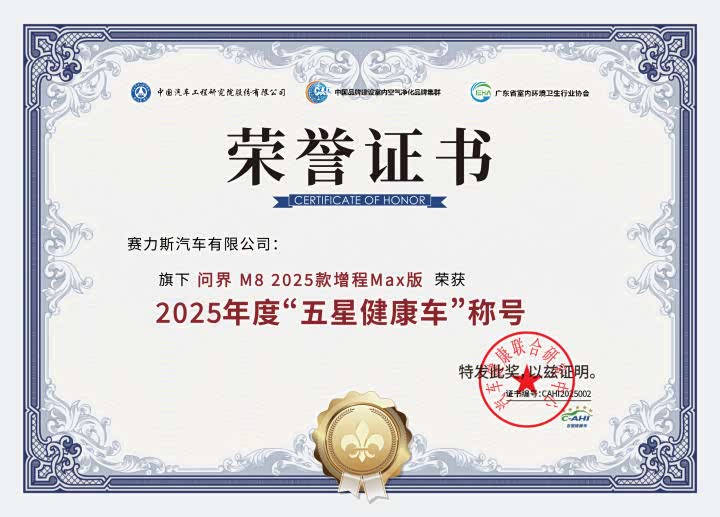 值得一提的是,问界M8荣膺“五星健康车”认证,标志着问界全系构建起“全系五星健康车”产品矩阵。这不仅是对单一车型的认可,更是问界对“零危害”品牌愿景的体系化践行。品牌始终精准洞察用户对健康出行的深层关切,系统性构筑起涵盖“清新呼吸、母婴亲肤、舒适护眼、静谧悦耳、抗扰无忧”的全维健康生态,将承诺深植于每一处细节,不仅重新定义了车内健康安全标准,更为新能源汽车行业树立了全新的价值标杆。未来,问界将持续以健康科技为驱动,引领行业迈向更高阶的健康安全出行时代。