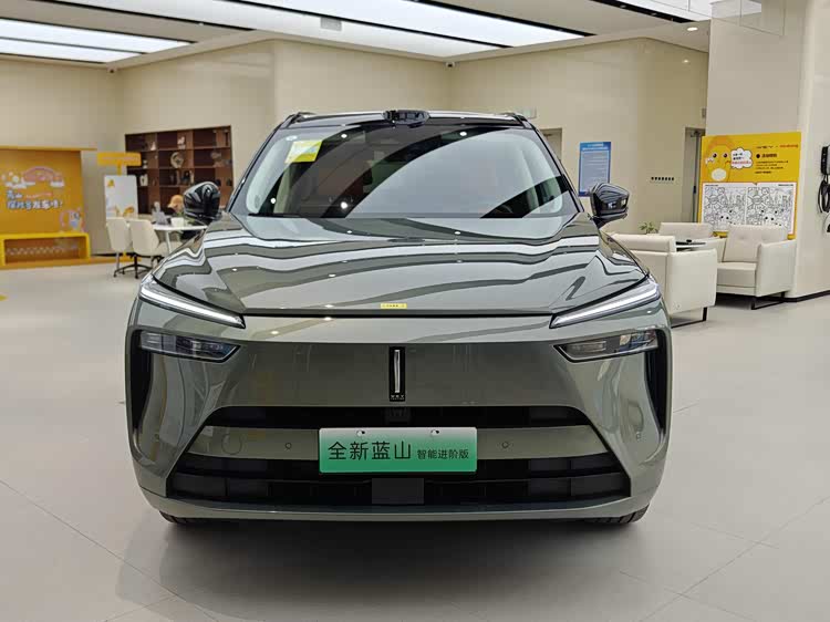 从实车图来看,全新蓝山智能进阶版延续了现款车型的造型设计,方正、立体的封闭式车头两侧配备分体式大灯组,其中上扬的日行灯带十分犀利,下方远近光灯组与导风槽组成“L”形样式,再配合双层熏黑梯形下格栅,给人感觉很有视觉冲击力。