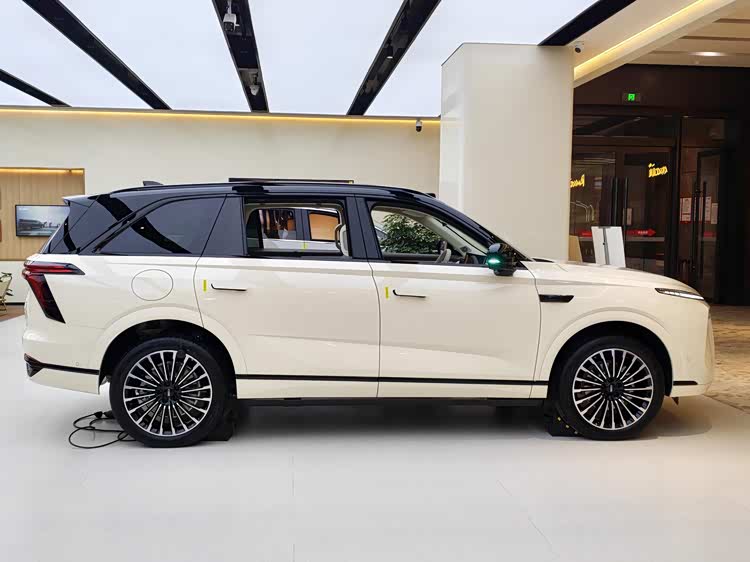 车身尺寸长宽高依旧为5156/1980/1805mm,轴距3050mm,庞大方正的身躯配合凌厉的线条勾勒,显得很有力量感,而包括悬浮式车顶、隐藏式门把手以及贯穿长虹尾灯等时尚元素也均没有缺席,并继续提供20英寸双色半封闭式轮毂、21英寸多辐亮面轮毂以及21英寸多辐熏黑轮毂+红色卡钳。