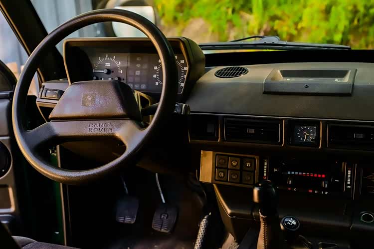 第一代揽胜的内饰相比现在的揽胜显得极其简约,没有什么高科技的配置,不过塑料件等在经历30多年的时间后依然保持不错。内饰以中央中线分割,左右的仪表、空调出风口都采用了完全对称的设计。