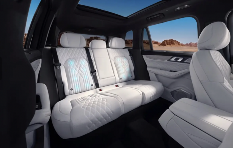 很多大五座SUV,宣传图里二排宽敞得能打太极,实际坐进去才发现:横向挤、坐垫短、靠背直。三人同坐的体验并不太好。领克09直接把二排做成“移动头等舱”:1366mm的横向宽度,540mm的坐垫深度,1130mm的腿部空间。这三个数字放在一起,意味着哪怕三个成年人并排坐,也能各自舒展,互不打扰。