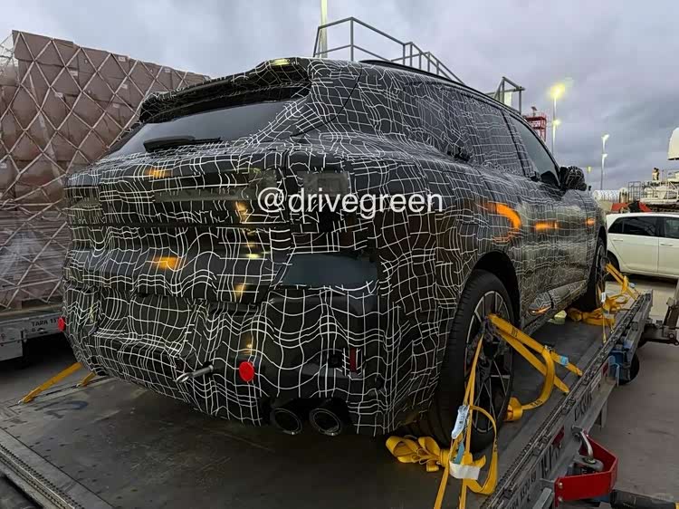 可以看到,下一代宝马X5的外观有着非常明显的新世代设计语言,尤其是前大灯组和双肾格栅处的造型,倒像是放大版的NA5,但小编感觉里边的灯光布置和下包围设计肯定是不同的。此外还能看到非常明显的后轮拱造型、新型轮毂设计、新样式的车门把手,虽然还没配备恶魔耳后视镜,但后面的双边四出排气则说明了一切。