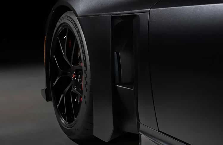 车侧是经典的GT车型造型,长车头、短车尾,搭配宽体肩线,整体运动感很强。前轮后方设计巨大尺寸的导风槽。轮毂尺寸为20英寸,搭配米其林 Pilot Sport Cup 2轮胎+红色卡钳,前轮尺寸为265/35,后轮尺寸为325/30,并且配备巨大的碳陶瓷刹车盘,在制动性能上有所提升。车身尺寸方面,长宽高分别为4820毫米、2000毫米、1195 毫米,轴距为2725毫米。